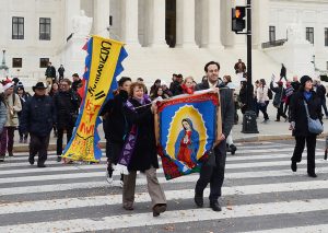 La imagen de Nuestra Señora de Guadalupe es llevada por fieles que descienden las escalinatas de la Corte Suprema, el martes 12, día central de la festividad por la Patrona de América.