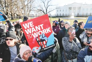 Empleados federales y activistas de uniones marcharon al mediodía del jueves 10 hasta la Casa Blanca para pedir que se ponga término al cierre parcial del gobierno porque perjudica a sus familias.