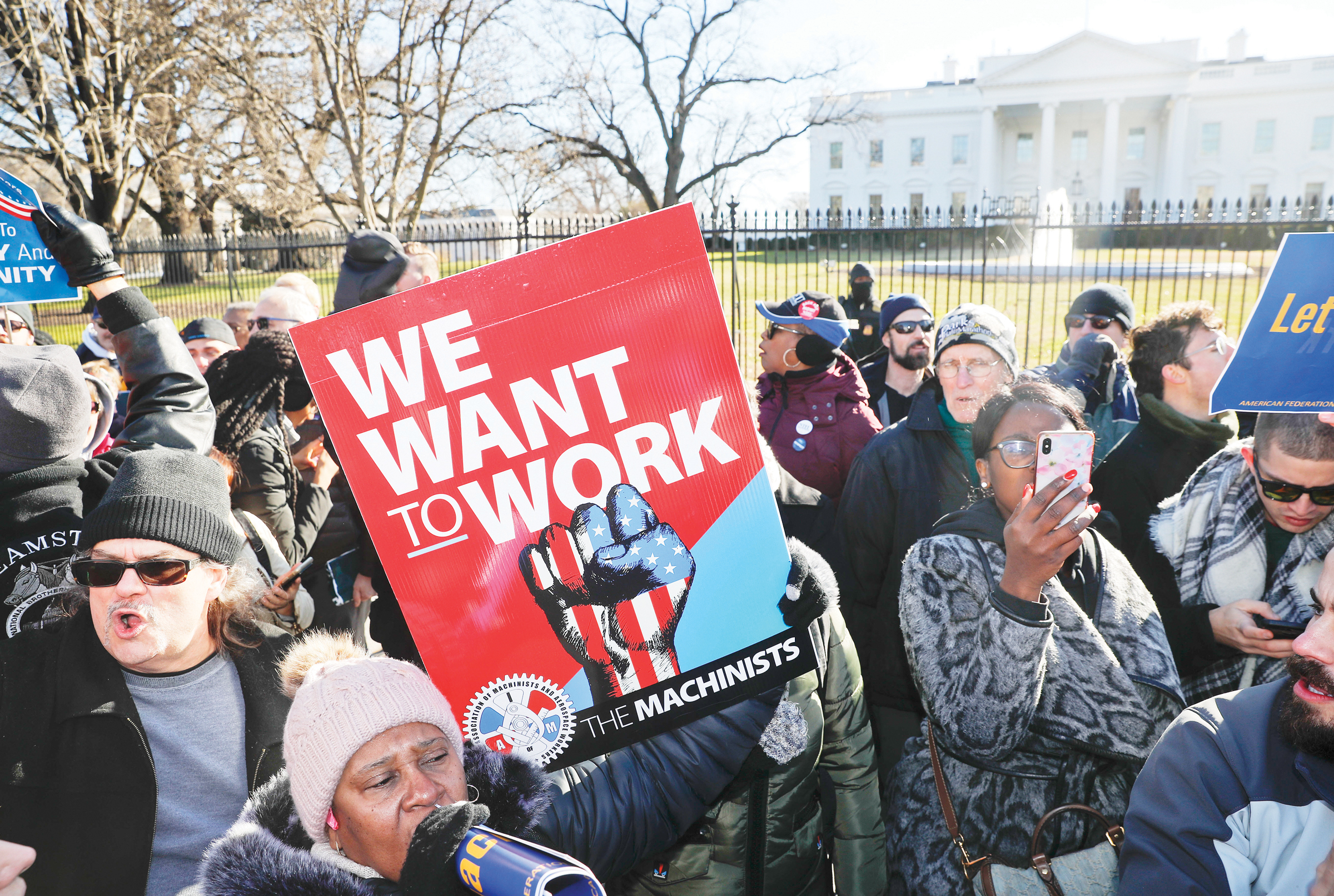 Empleados federales y activistas de uniones marcharon al mediodía del jueves 10 hasta la Casa Blanca para pedir que se ponga término al cierre parcial del gobierno porque perjudica a sus familias.