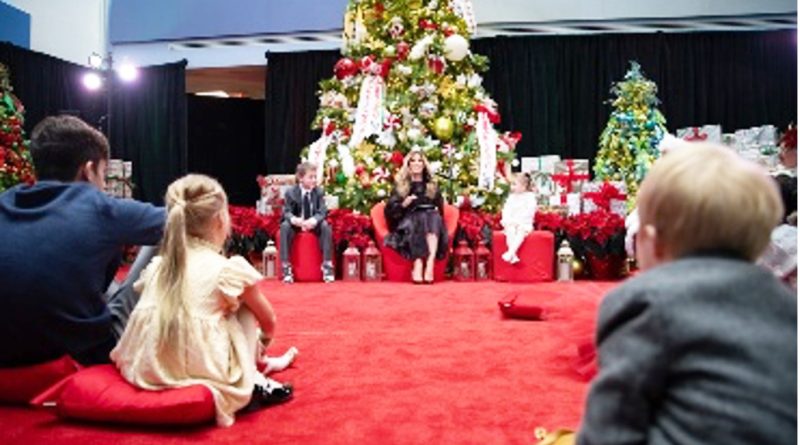 Foto: Delante de un árbol navideño que se levanta en el Hospital Nacional de los Niños, la Primera Dama Melania Trump lee un cuento mientras la escuchan escuchan niños pacientes, sus familiares y médicos. Foto: Children’s National Hospital