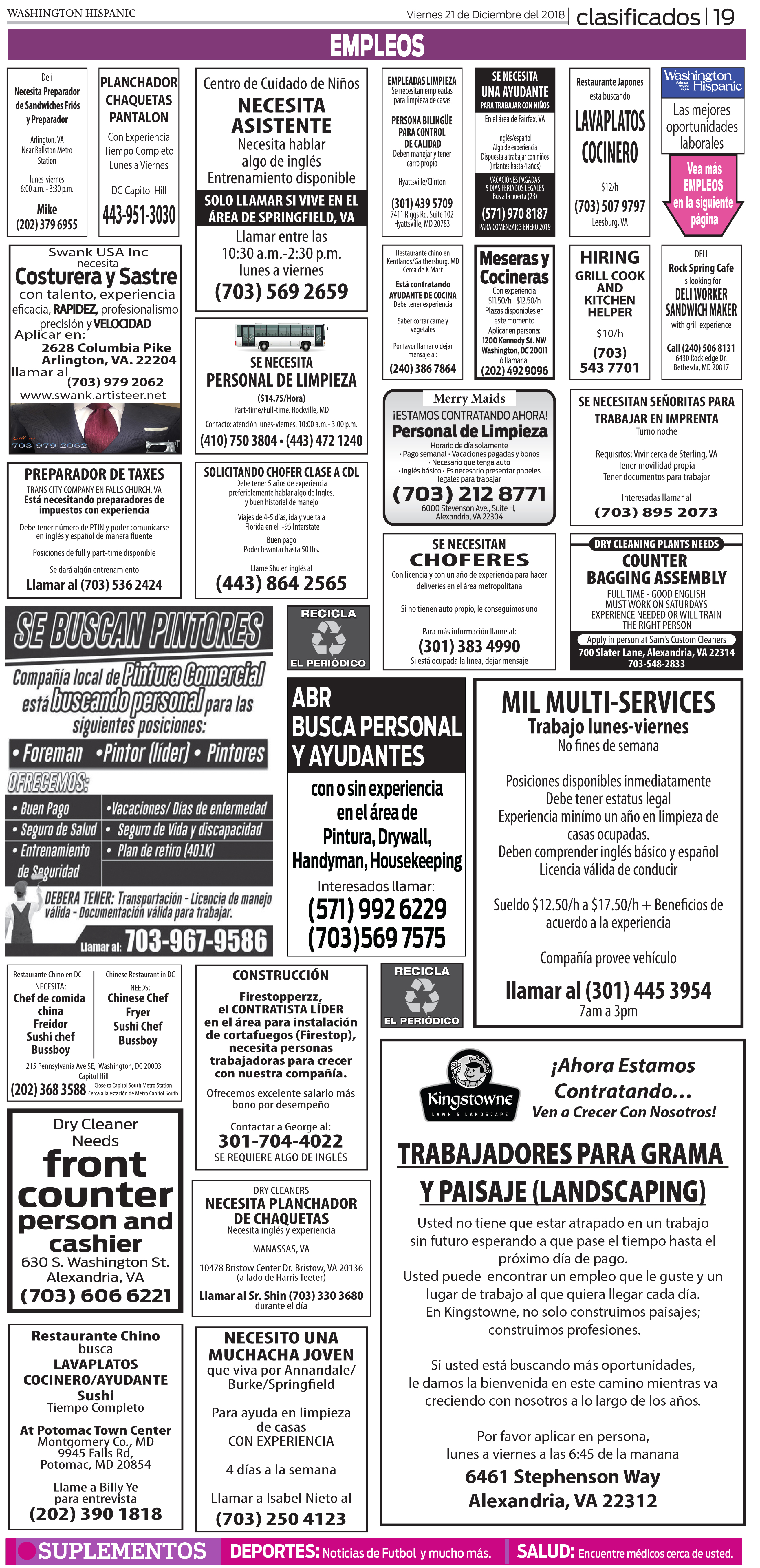 • Descarga aquí la edición de clasificados para que puedas ver las opciones de trabajo disponible en tu area